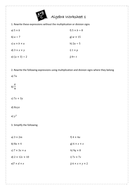 There are a range of different algebra worksheets, including generating expressions, solving simple equations and calculating values. Here you will find our range of basic algebra worksheets. Math worksheets make learning engaging for your blossoming mathematician. Effective algebra worksheets have to be easy to use. Enjoy these free pintable sheets.